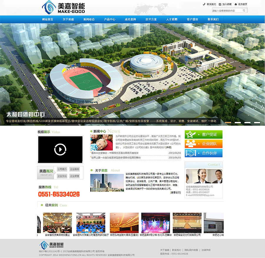 徽美嘉智能科技有限公司是一家專業從事音響燈光、舞臺機械、LED屏及多媒體視屏顯 示、數字會議及遠程視屏會議、數字影院、公共廣播、集中管理分散控制,安防監控及報警等智能化工程中各系統的設計、銷售、安裝調試和維護于一體的綜合性系統集成公司。